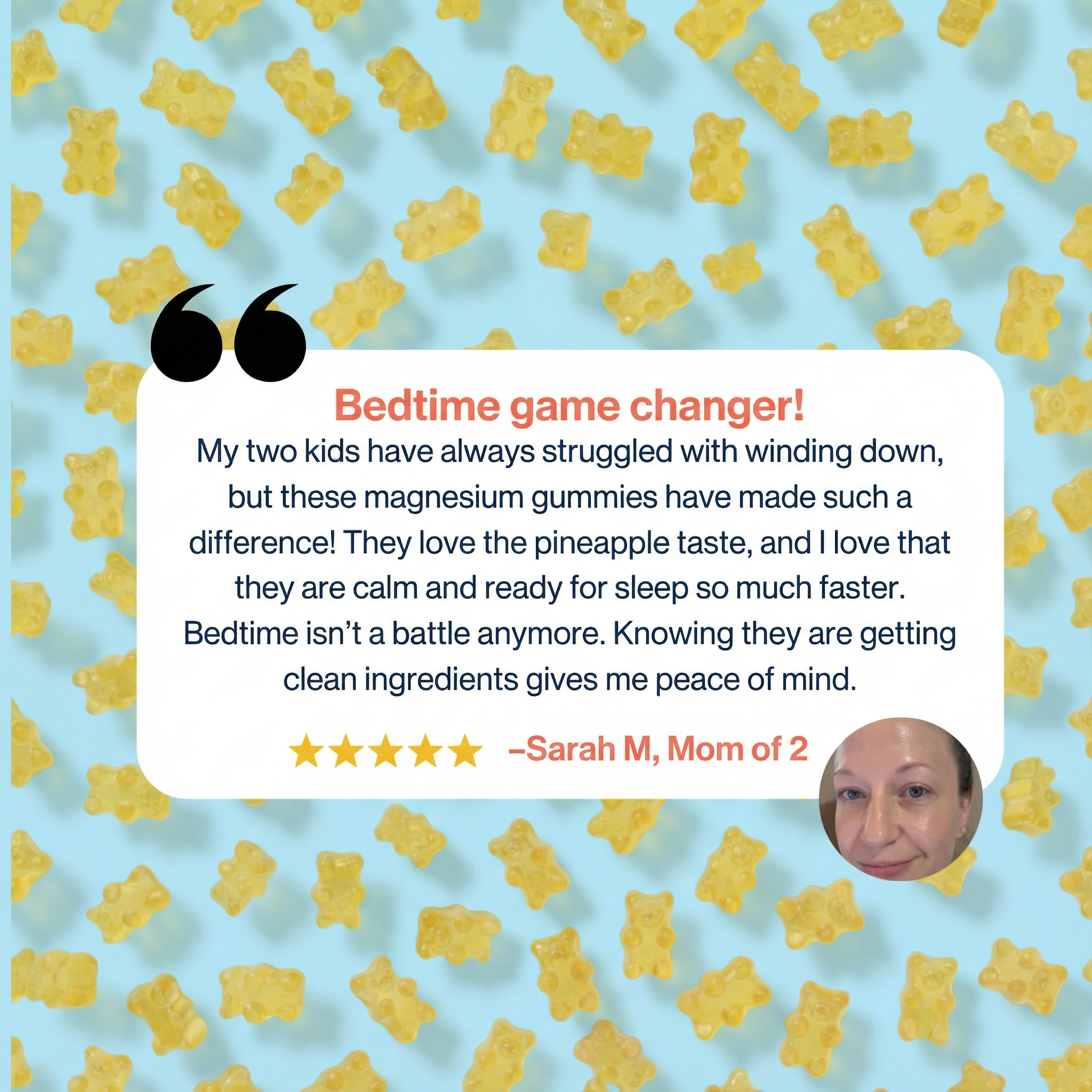 Sarah P. December 2025Verified BuyerNice ProductThese magnesium gummies have been a great addition to my son’s daily routine. Every child responds differently, but in our case, we’ve noticed that they help him feel more calm and balanced. He really likes the taste, so getting him to take them is easy—he even asks for them himself. What I’ve noticed most is that they help him handle his energy and restlessness better, especially during moments where he used to struggle to stay focused or calm. They’re not a miracle cure, but they’ve definitely been a helpful support alongside everything else we do for him. We’re very happy with the product.