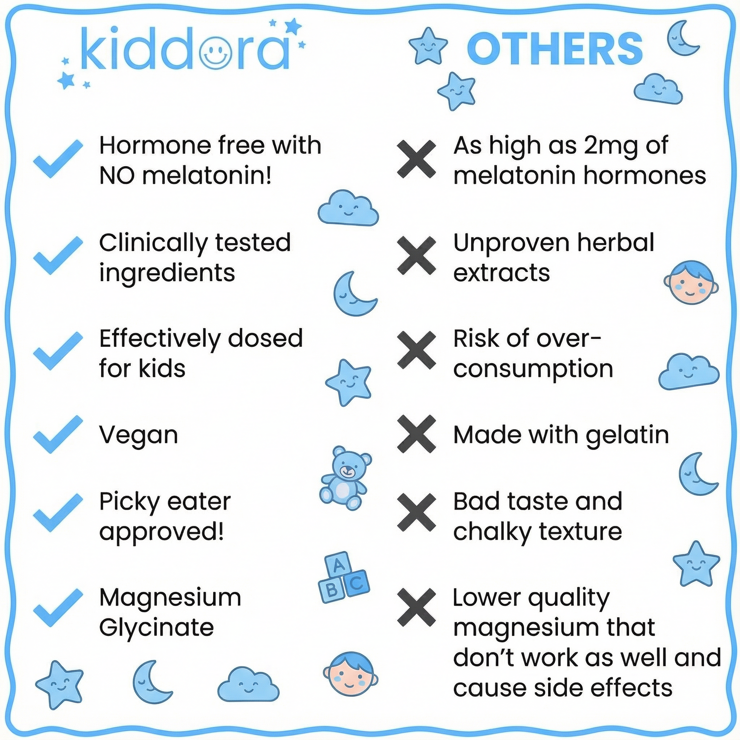 No melatonin • No artificial dyes • No hormones • No stimulants